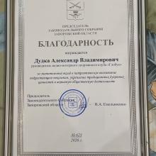 Так Председатель правления ВМК «Глобус», руководитель волонтёрской группы «Тыловой обоз» Александр Владимирович Дудка и исполнительный директор православного радио «Радонеж» Кирилл Константинович Никифоров были награждены благодарственными письмами которые вручил зам. председателя комитета по обороне Законодательного собрания Запорожской области Сергей Николаевич Юрченко по поручению Председателя Законодательного Запорожской области Виктора Андреевича Емельяненко.