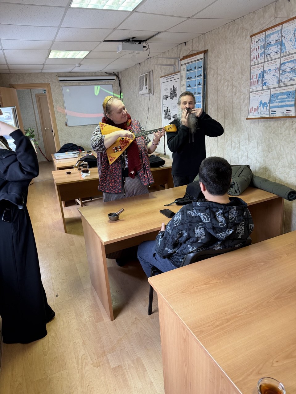 А после обеда, в учебном классе Александр Владимирович Дудка показал фото и видеоматериалы о жизни и учёбе их сверстников в разных странах, собранных и привезённых им из своих путешествий.